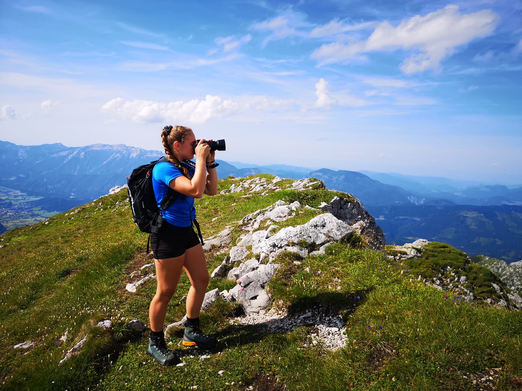 Neben dem Bergsport ist Emily auch kreativ unterwegs: Sie zeichnet und fotografiert sehr gerne – die Kamera ist bei Wanderungen fast immer dabei. Ein besonderes Erlebnis hatte sie am Weg zum Großen Priel bzw. zur Welser Hütte, als ihr am Plateau Richtung Fleischbanksattel mehrere Gämsen begegneten. Eine davon kam ihr bis auf etwa vier Meter nahe – perfekte Gelegenheit für beeindruckende Fotos 📸.
