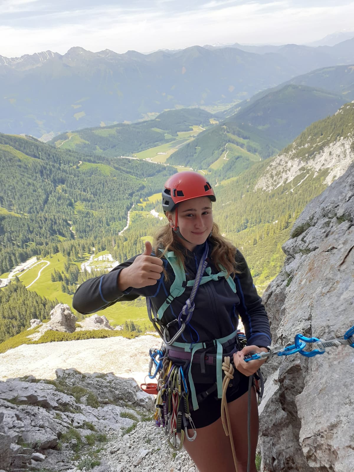 Am Berg fühlt sich Emily zuhause: Ob Klettern (Mehrseillängen und Sportklettern), Wandern, Schifahren oder Schitouren – Hauptsache draußen unterwegs. Besonders angetan hat es ihr das Tote Gebirge, und ganz oben auf ihrer Wunschliste steht der Grimming, der sie schon lange fasziniert.