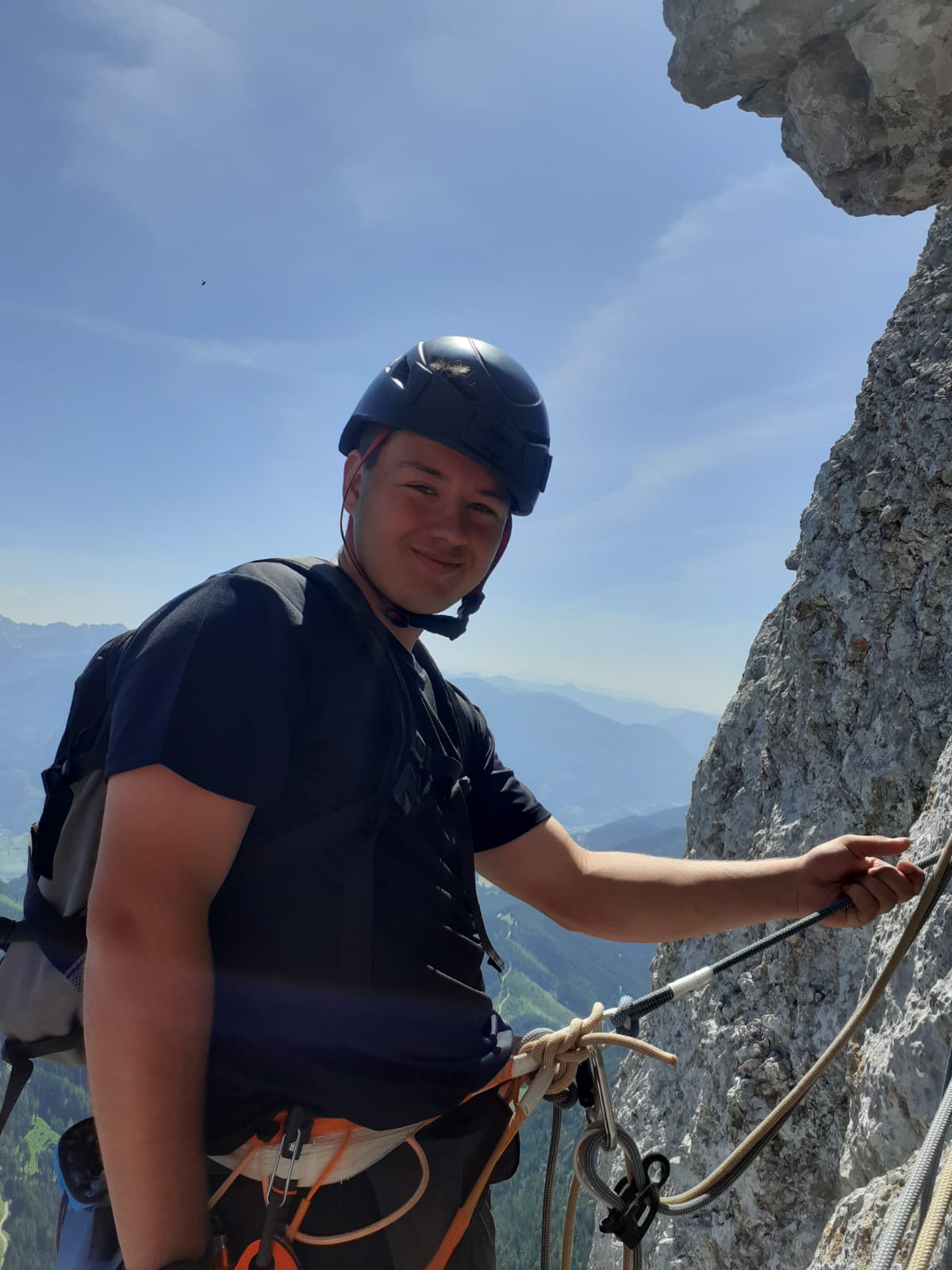 Wenn Marcel nicht gerade programmiert oder sich mit Technik beschäftigt, findet man ihn am liebsten am Fels: Besonders das Mehrseillängenklettern hat es ihm angetan. Sein absolutes Lieblingsgebiet ist die Kampermauer, wo er sich am Berg so richtig zuhause fühlt.